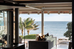 The main residence positioned on the beachfront is a striking combination of cedar, precast concrete and sliding screens, combining industrial permanence with refined coastal living. Expansive floor-to-ceiling double glazing captures superb sea views from the open plan living, dining and kitchen area. Concrete floors with gas underfloor heating, a feature fireplace and an adjoining sunroom grace the lower level. A dramatic double-height void leads upstairs to the master suite with a private lounge, full-width deck and large ensuite with a bath offering one of the best views- superb. A second double bedroom connects to a full bathroom, while a third bedroom or second master suite includes its own living area, ensuite and deck. A generous double garage, gated driveway access and full security system complete the primary home. This home could easily be made into four bedrooms as the fourth was amalgamated into the master suite by the owners.